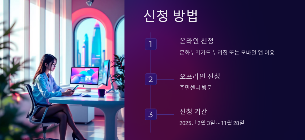 "영화, 공연, 전시, 도서 구입, 스포츠 경기 관람, 숙박, 여행, 체육시설 이용 등 다양한 혜택을 누려보세요!" 🎬📚⚽