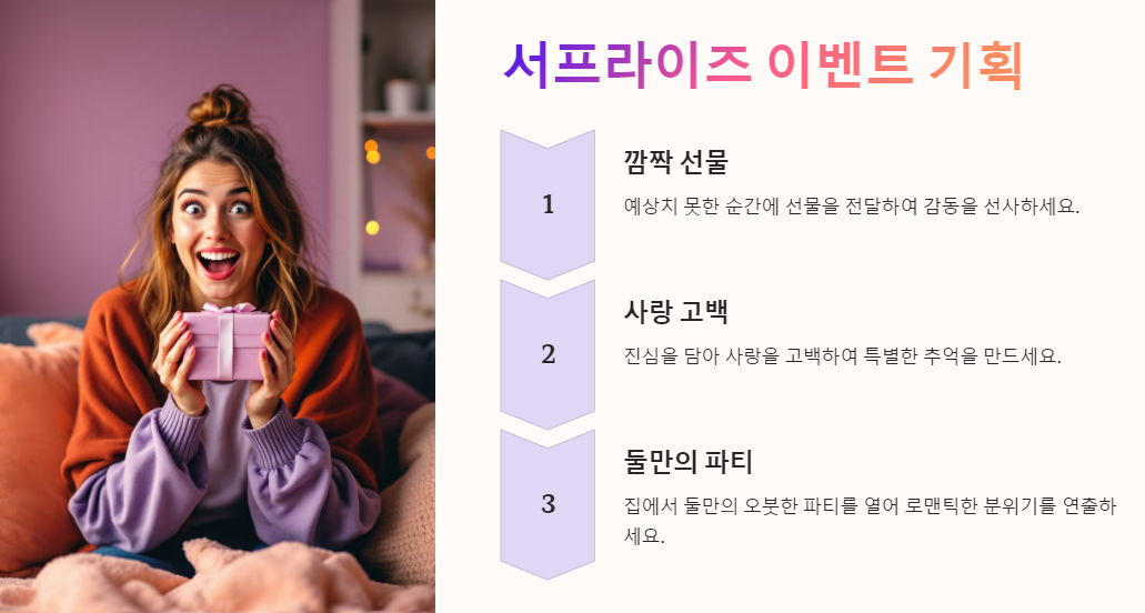 • 서프라이즈 선물 박스: 작은 선물들로 채운 박스를 준비해 보세요.