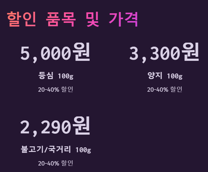- 불고기/국거리: 2,290원 ~ 2,990원 (기존 소비자가격 대비 20~40% 할인)