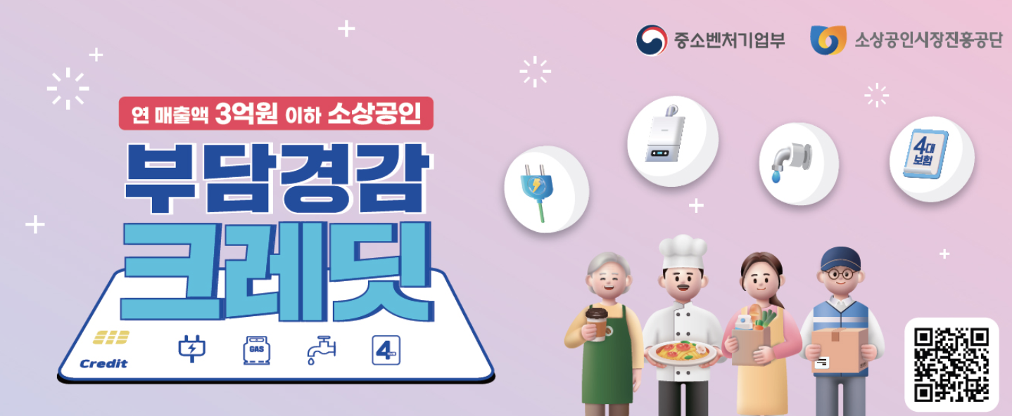 소상공인 대상으로 최대 50만 원으로 공과금, 4대 보험료를 지원하여 부담을 덜기 위해 부담경감 크레딧 지원하는 사업이 시행됩니다.