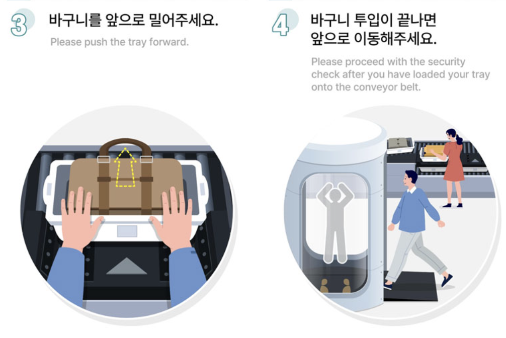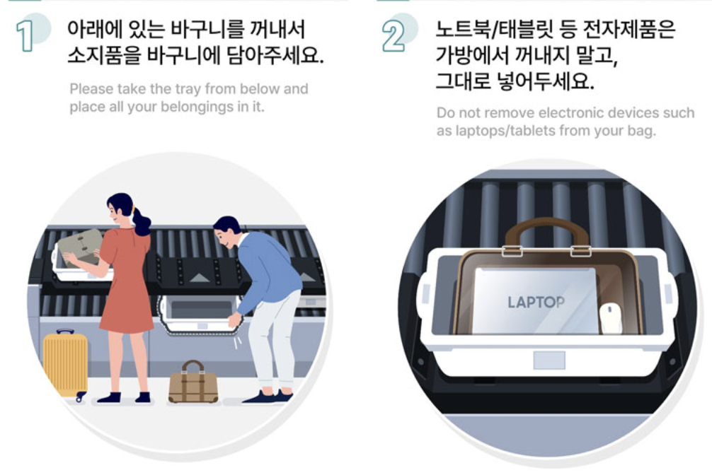 노트북, 보조배터리 꺼내기, 액체류는 100ml 이하 투명 지퍼백에 담기, 금속류 소지품은 미리 분리