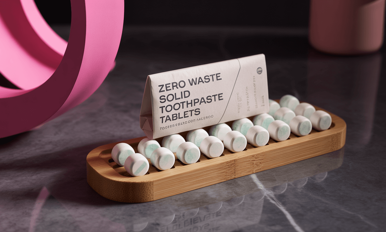 - 고체 치약: 튜브 대신 태블릿, 종이 포장.