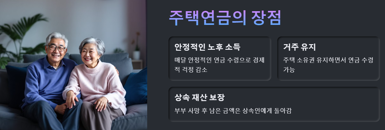 - 상속 재산 보장: 부부 모두 사망 후 주택을 처분하여 남은 금액은 상속인에게 돌아갑니다.