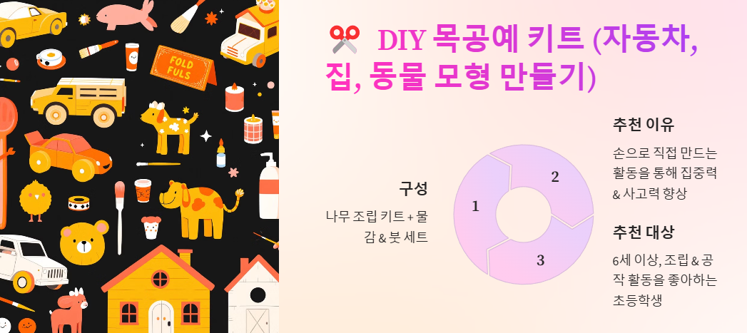 ✂ 3) DIY 목공예 키트 (자동차, 집, 동물 모형 만들기)