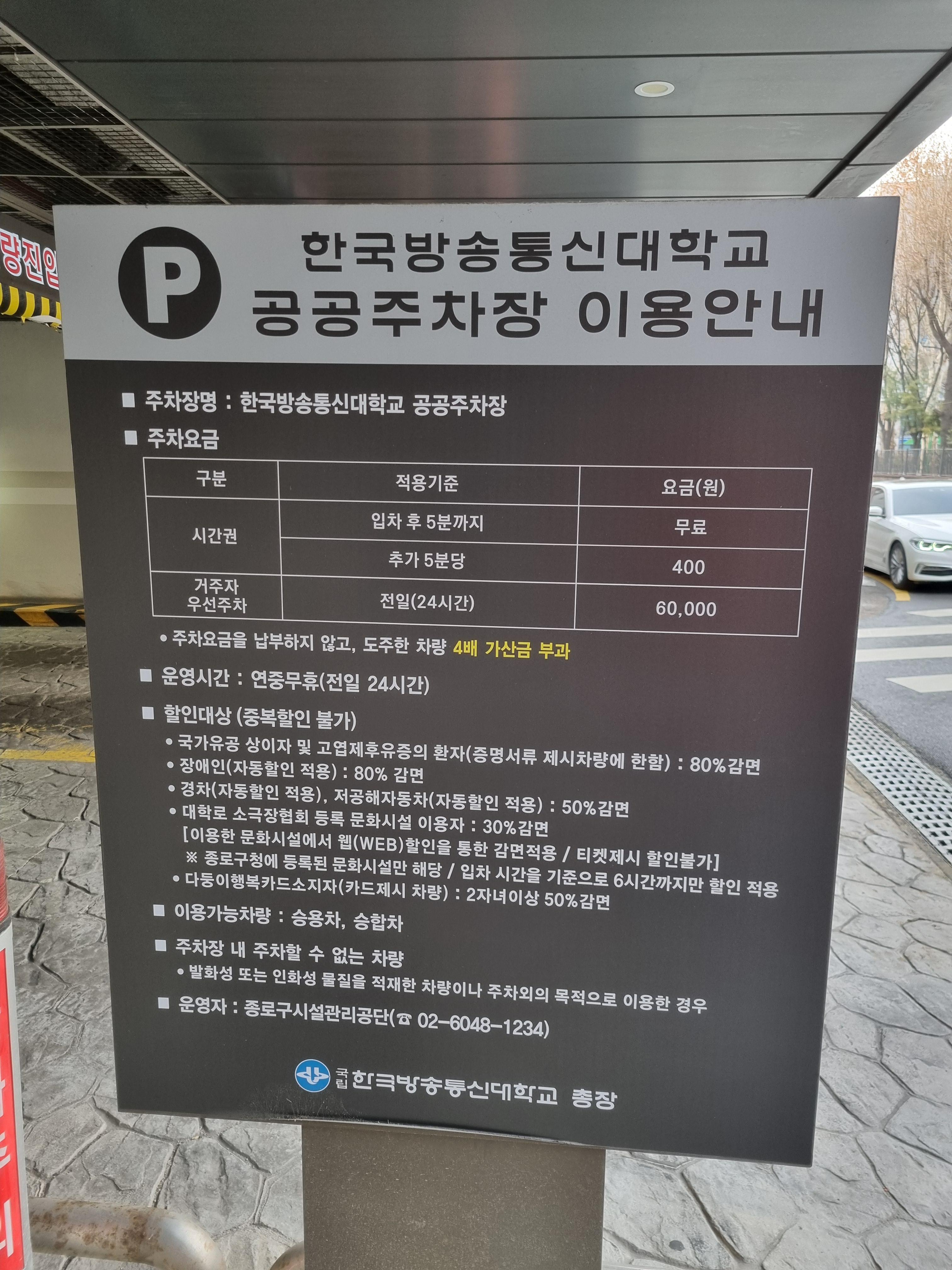• 공연 관람 시 할인: 대학로 예술극장 등 공연장을 이용할 경우 주차 할인 혜택을 받을 수 있습니다.