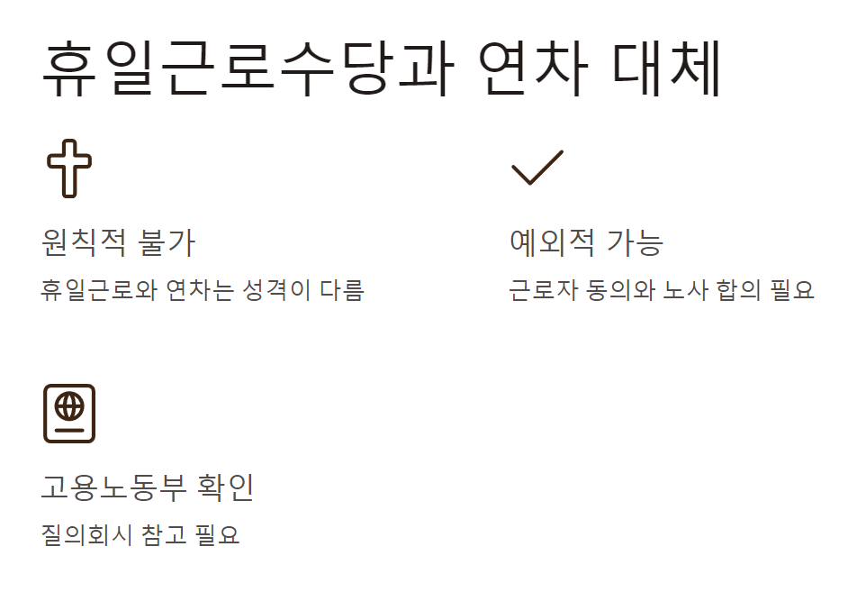 5. 휴일근로수당 대신 연차로 대체 가능할까요?
