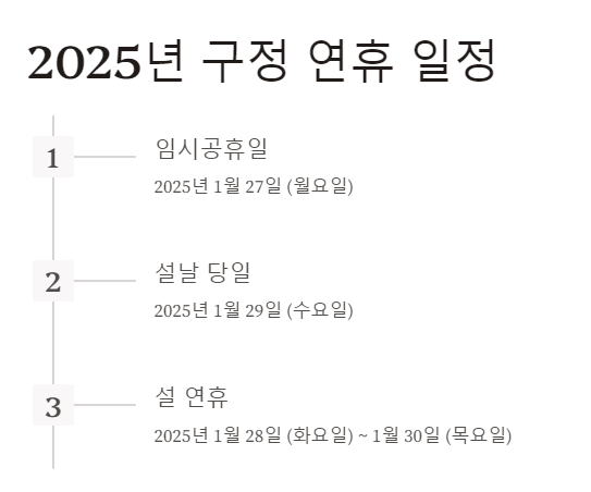 - 설 연휴 기간: 2025년 1월 28일 (화요일) ~ 1월 30일 (목요일)