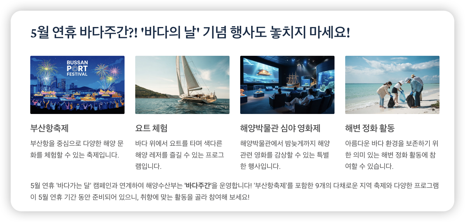 🌊 5월 연휴, 함께 떠나요, 아름다운 우리 바다로!